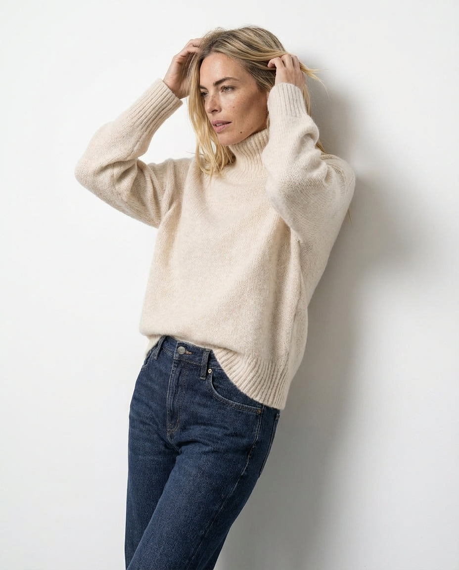 Jersey de cuello alto elegante Isabella - Beige
